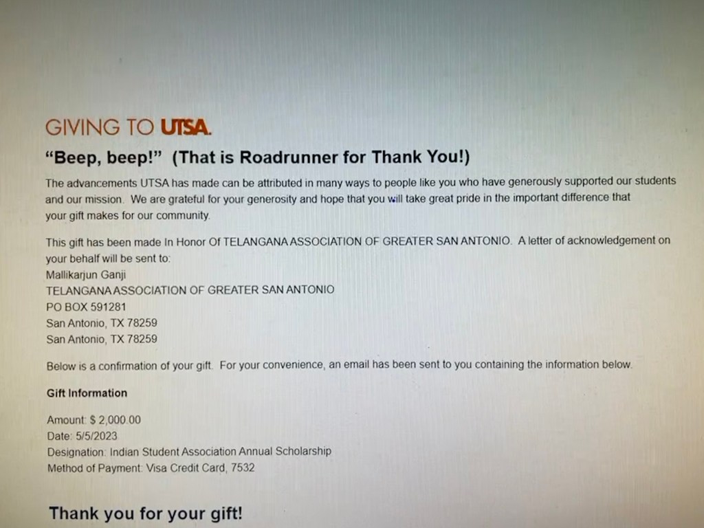 Telangana Association of Greater San Antonio is a non-profit organization and shall be operated exclusively for cultural, health, educational and charitable purposes within the meaning of Section 501 (c)(3) of the Internal Revenue Code of 1986, or the corresponding section of any future Federal tax code.